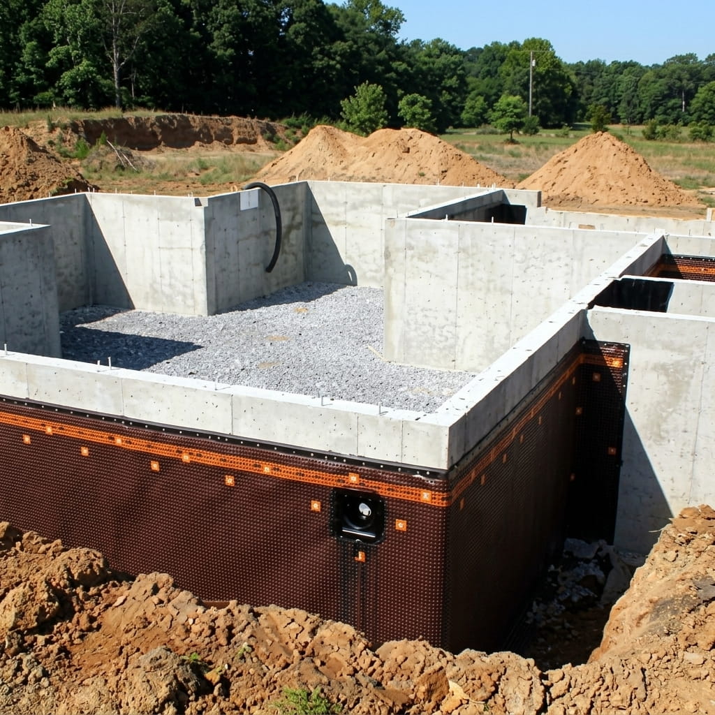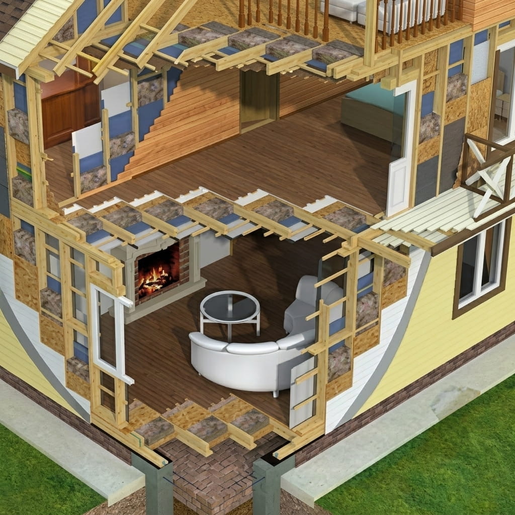Включает земляные работы, монтаж опалубки, дренажной подушки, установку армирующего каркаса, подготовку закладных под коммуникации, заливку бетона и распалубку. Это работы «нулевого цикла», их невозможно переделать на последующих этапах, поэтому к процессу важно подойти ответственно.